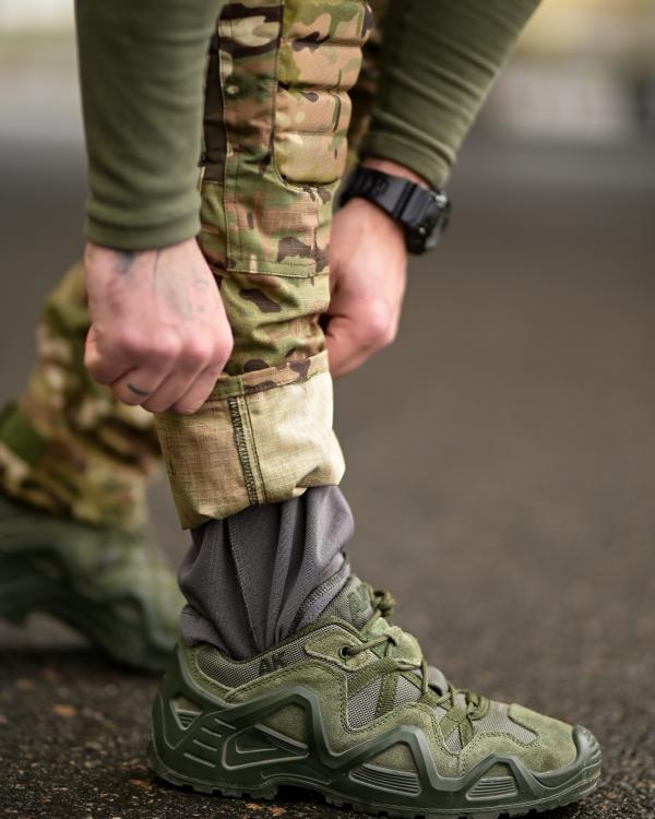 регулювання об’єму штанин знизу на липучці — можна надягати поверх берців або заправляти всередину.