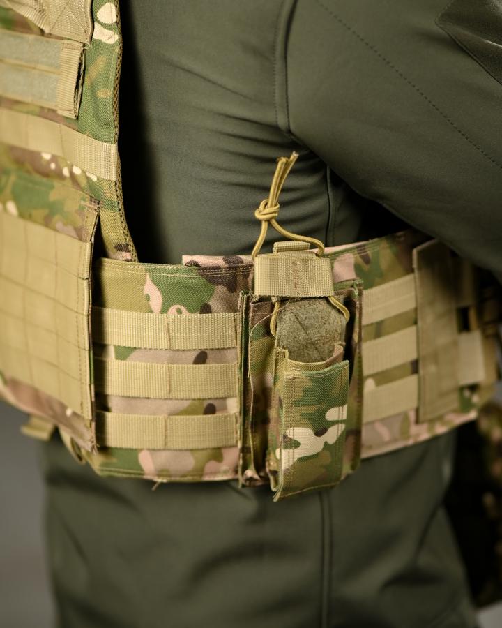 Професійна тактична плитоноска з модульною системою кріплення, призначена для розміщення бронеплит та додаткового спорядження. Забезпечує надійну фіксацію, ергономічну посадку та зручність при тривалому використанні.
